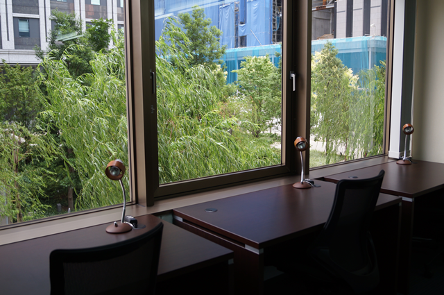 集中的にデスクワークをしたい方向けの専用のオフィスデスクエリアが利用できるプランです。周囲を気にせずより効率的に作業ができるようイトーキの高級Fチェアを導入しています。
